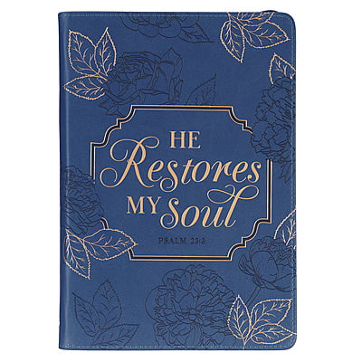 He Restores My Soul Navy Blue - Faux Leather Journal With Zipped Closure