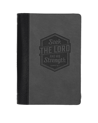 Seek the Lord and His Strength Grey Faux Leather Journal with Zipped Closure