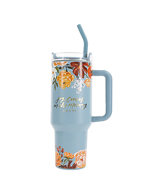Joy Comes in the Morning Large Stainless Steel Mug with Handle and Straw