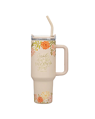 Consider How the Wildflowers Grow Large Stainless Steel Mug with Handle and Straw
