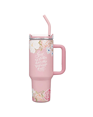 With God All Things Are Possible Pink Large Stainless Steel Mug with Handle and Straw