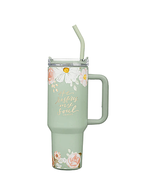 He Restores My Soul Large Stainless Steel Mug with Handle and Straw