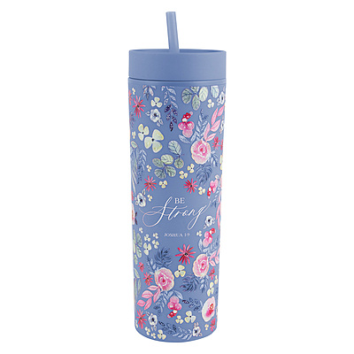 Strong and Courageous Navy Blue Plastic Travel Tumbler with Straw