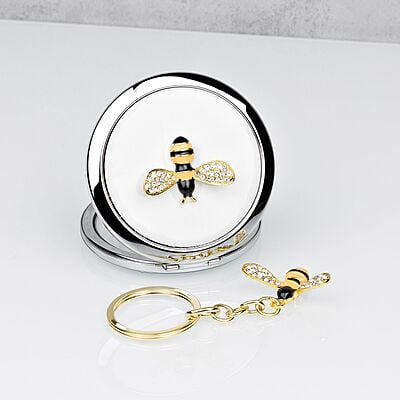 Sophia - Silverplated Bumble Bee Compact Mirror and Keyring