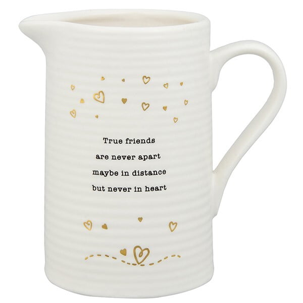 Cherish the bond of friendship with this elegant white small jug/pitcher, inscribed with a heartfelt quote. Perfect for those friends who are close in heart, no matter the distance!