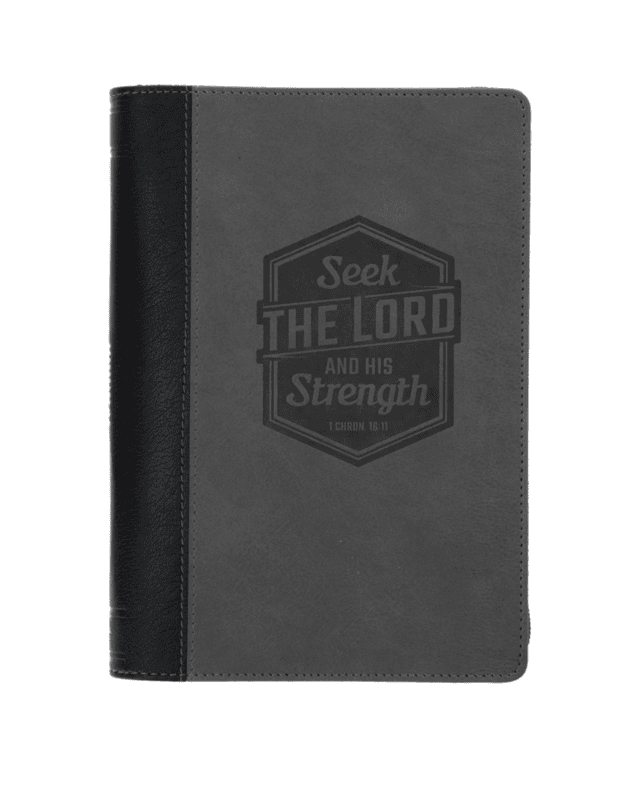 Seek the Lord and His Strength Grey Faux Leather Journal with Zipped Closure