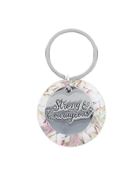 Strong and Courageous Metal and Faux Leather Key Ring