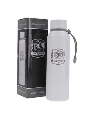 Be Strong and Courageous White Stainless Steel Water Bottle