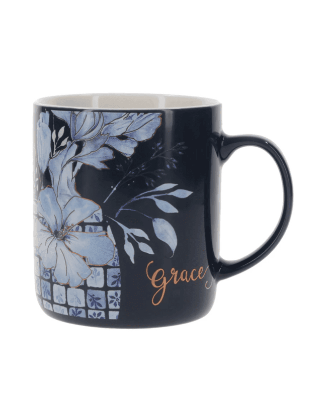 Grace Floral Navy Blue Ceramic Mug