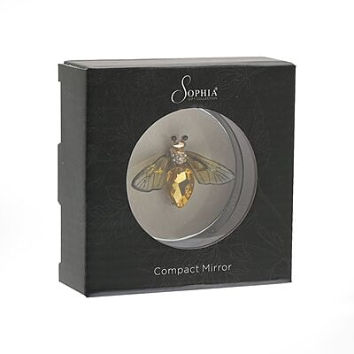 Add a touch of sparkle to your day with this exquisite bee compact mirror. Dressed in vibrant yellow hues, this mirror marries style and sparkles perfectly. Housed in a sleek Sophia black gift box, it makes an excellent gift for your loved ones who appreciate a bit of glitz in their accessories.