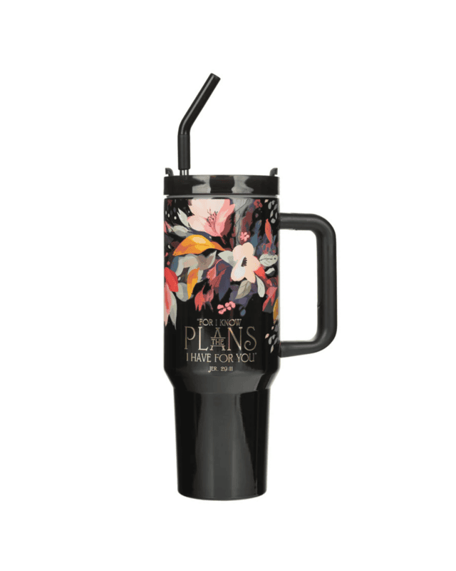 For I Know the Plans Large Stainless Steel Travel Mug with Handle and Straw