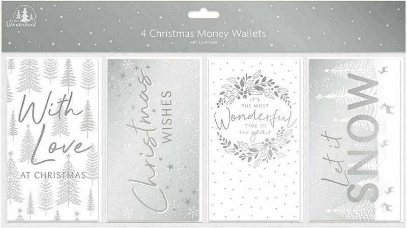 Christmas Pack of 4 Silver Money Wallets and Envelops