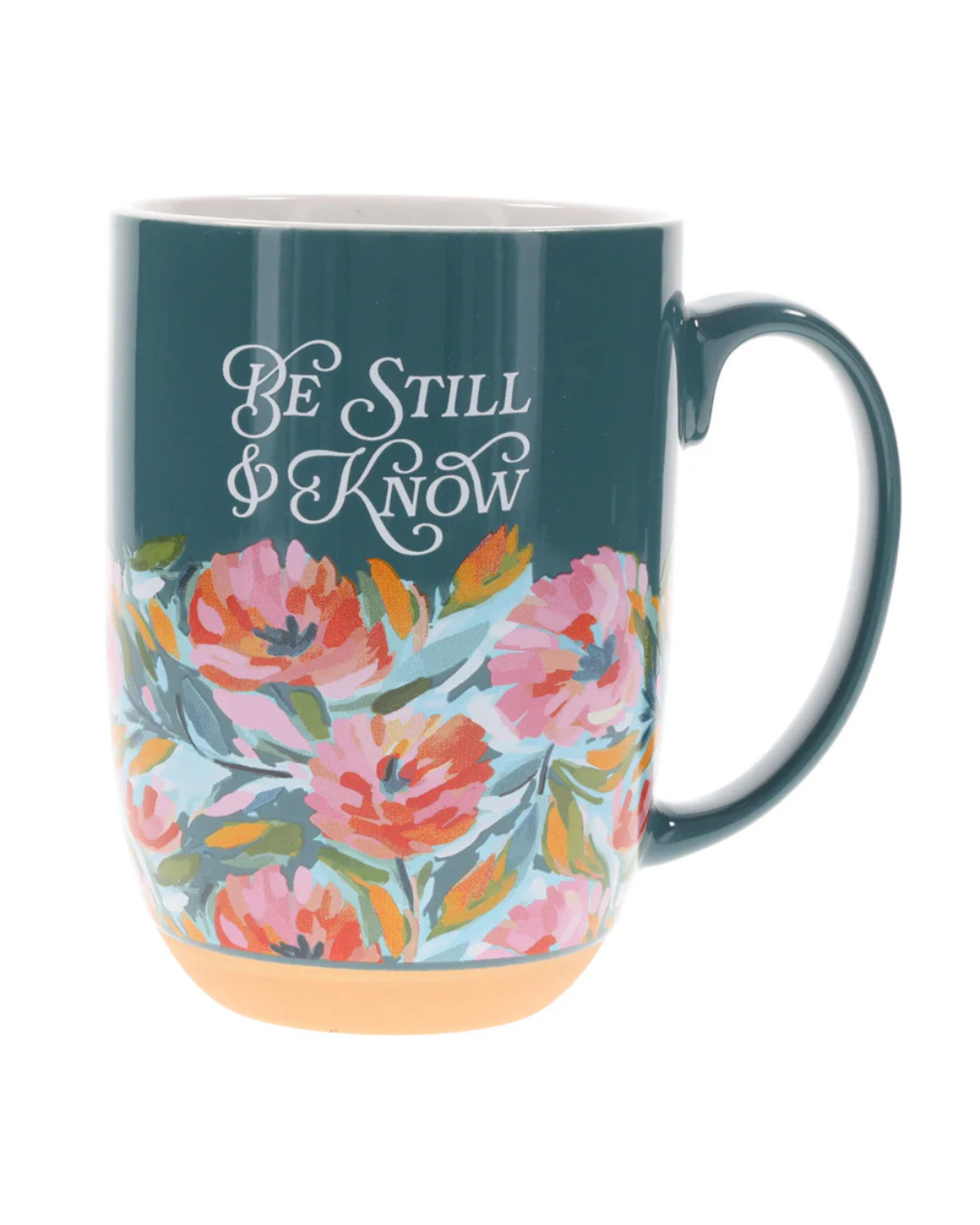 Be Still and Know Floral Teal Green Ceramic Mug