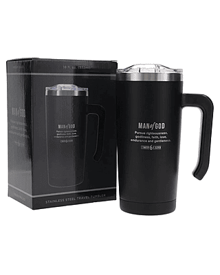 Man of God Black Stainless Steel Travel Mug with Handle