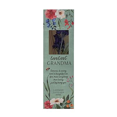 Surprise your beloved grandma with this elegant 'Loveliest Grandma' Diffuser - a thoughtful gift that adds both beauty and relaxation to her space. Filled with realistic faux lavender and six aroma sticks, this diffuser fills the room with a calming fragrance. Encased in a purple glass bottle and packaged in a window colour box, it's a gift that's as delightful to give as it is to receive.